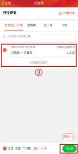 在众多乘车记录中,找到您想要开具发票的那一笔乘车记录。点击该记录后,会进入一个新的页面,页面上会有“开发票”的按钮,果断点击此按钮。