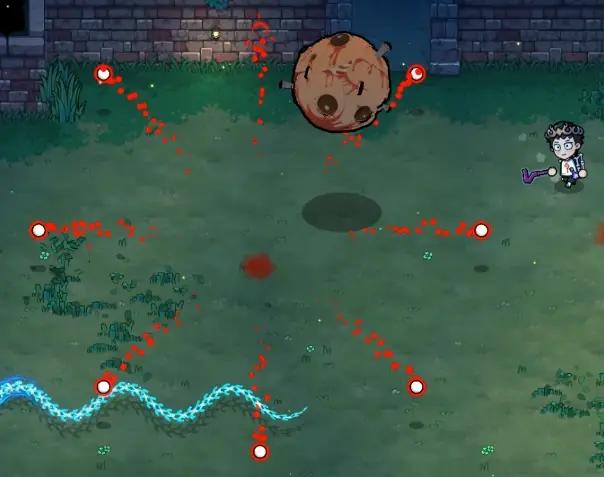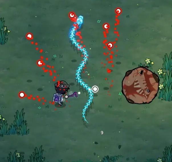 攻击方式一:会不停的冲你滚过来,速度快撞墙后会喷出弹幕。