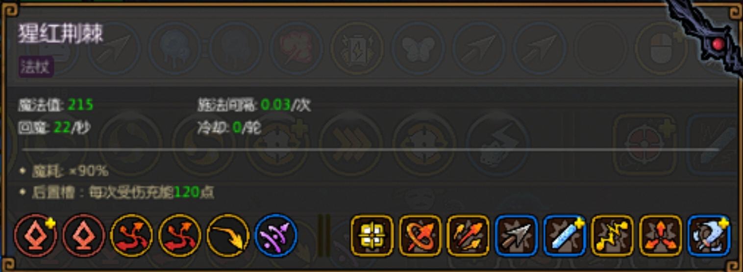 后期法杖用猩红荆棘,虽然是受伤充能,但是无敌期间碰到怪也会充能。