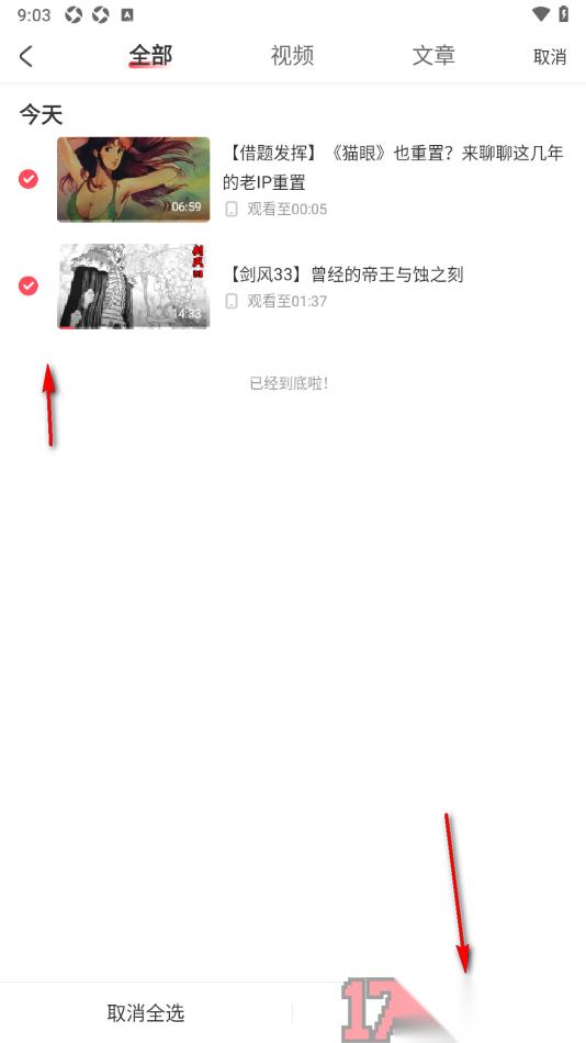 5.清除之后页面上的内容将会快速的消失,如果平时经常进入到阅读历史页面中查看原来观看过的内容,那么不建议清除历史记录,防止后期在查找内容时找不到。