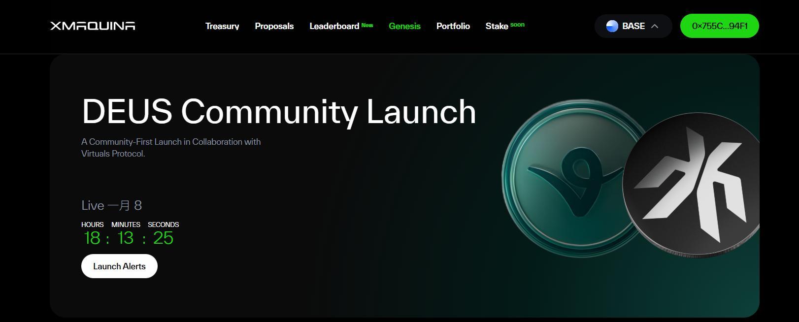 1 月 8 日 20:00(UTC+8),Virtuals Protocol 首个 Titan 模式项目 XMAQUINA 即将开启其代币$DEUS 的公开销售。