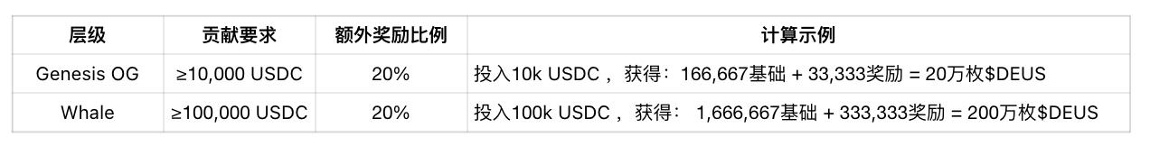 值得注意的是,参与此次获取的 $DEUS 代币将在 TGE 结束后立即解锁 33%,剩余 67% 将分为 12 个月线性释放。