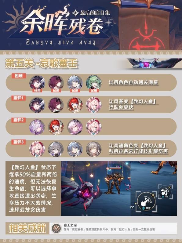 《崩坏:星穹铁道》中余晖残卷共有5个关卡,每个关卡都会设定特殊的环境,想要知道这个活动如何获得全部奖励的玩家请看下面“牧牧Muu”带来的《崩坏星穹铁道》余晖残卷全关卡配队参考,希望能够帮助大家。