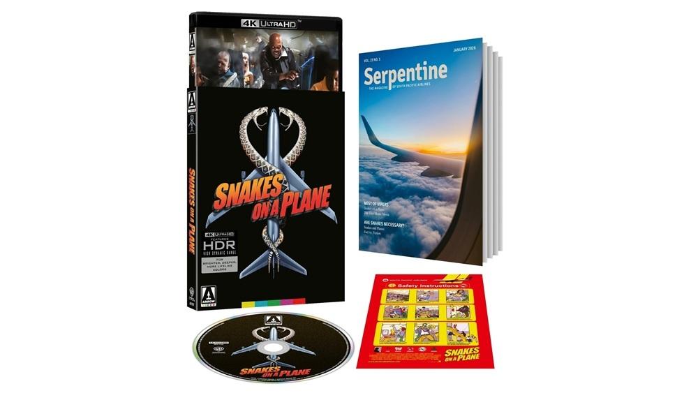 《蛇患航班》(Snakes on a Plane)是影史上最奇特的电影之一,二十年来一直拥有一批狂热的追随者。影片由塞缪尔·杰克逊主演,饰演一名负责将证人从夏威夷护送至洛杉矶的 FBI 探员。当有人在机舱内释放出一群毒蛇攻击乘客时,他的任务变得异常复杂。随之而来的是一部荒诞而夸张的动作惊悚片,在其上映期间获得了约 6200 万美元的票房。如果你想以一种有趣的方式纪念它的 20 周年,那么《蛇患航班》限量版现已开启预订,将于 1 月 20 日正式发售。更棒的是,作为 Arrow Video 五折促销活动的一部分,该版本目前的售价仅为 25 美元(原价 50 美元)。