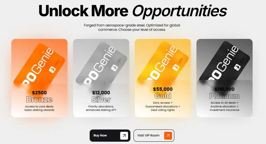 IPO Genie 通过分级系统构建参与机制,奖励持有较大股份的股东,同时将准入门槛大幅降低,远低于传统风险投资: