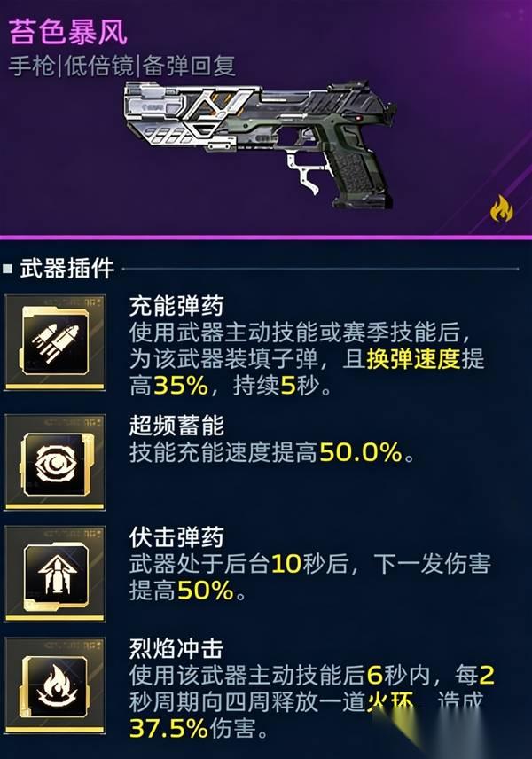 把手枪换成苔色暴风,这把枪自带技能装弹,主武器一槽换超载弹匣,其他不变。