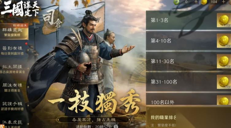 活动内容:主公们透过参与游戏进程累积繁荣度,活动结束将根据主公繁荣度的职业排名结算奖励,可获得大量黄金!
