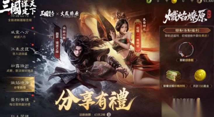 一、《三国:谋定天下》携手《火凤燎原》联动活动正式开跑