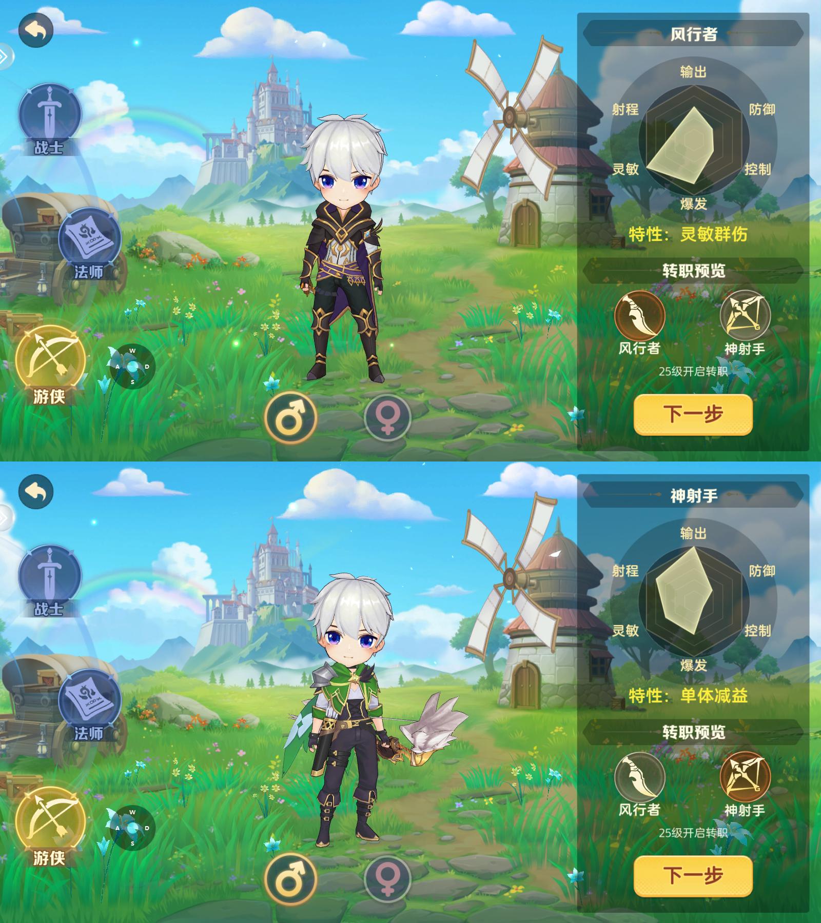 每个职业还分别有两个职业分支,在冒险家达到25级,并完成转职考核后,就可以开启转职啦!