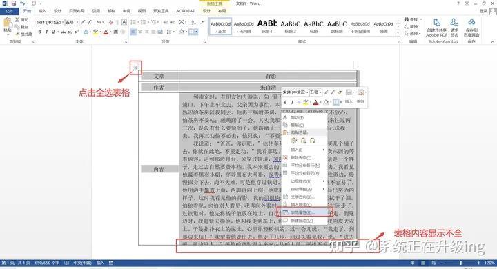 1、打开word,点击表格右上角十字箭头图标全选表格,然后在表格上单击鼠标右键,点击【表格属性】。