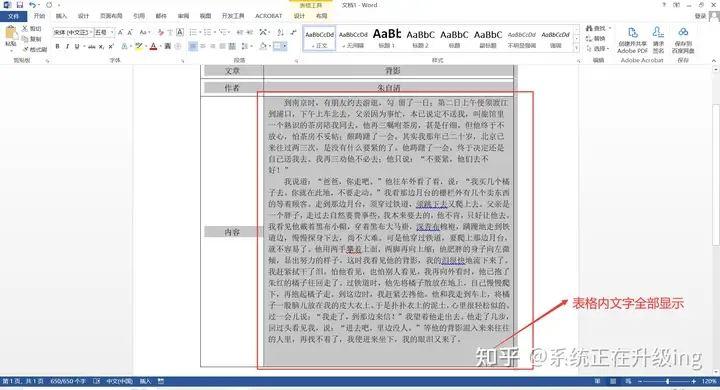 3、文字显示完全。这时候文字就可以全部显示在Word表格中了。