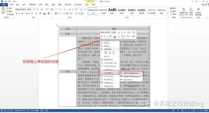 1、打开word文档,先点击表格右上角十字箭头图标全部选中表格,再在表格上单击鼠标右键,在打开的下拉菜单中选择【自动调整】-【根据内容调整表格】。
