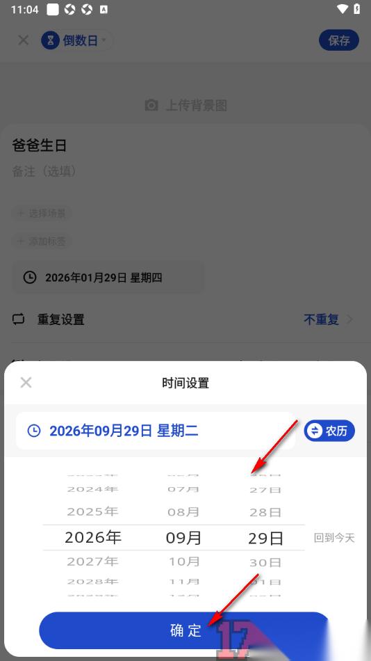 3.在当前打开的页面上即可根据自己的需求滚动日期选项选择指定的日期即可保存。