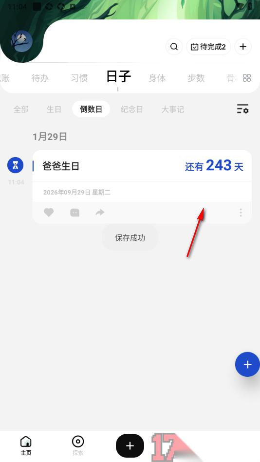 5.完成所有设置之后返回到倒数日的页面上,即可查看到当前所设置的倒数日的天数信息,如图所示。