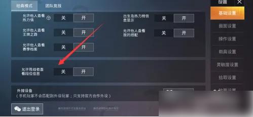 在这里点击选项允许观战者查看段位信息。