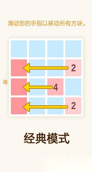 一个4×4的方格棋盘上点击方向按键就可使方块进行移动,然后生成一个更大的数字方块,这个更大数值的新方块是原来方块进行碰撞的翻倍结果持续合并的次数增加后,数字的大小也会更接近2048,这款游戏优化了合并的路径和方式,大大提升了玩家在闯关时候的成功几率,围绕着2048数字的合成,还设置了很多有趣的关卡任务。