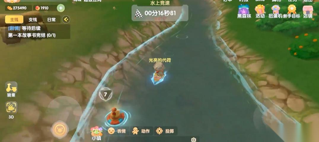 地点通常是在开心农场和阳光牧场之间的一条河流里。你一到那儿,就能看到水面上漂着好些红色的浮筒,上面都标着数字。你得先找到标号为1的起点浮标,靠近它、触碰它,比赛就正式开始了。然后你需要操控你的小摩尔,按照1、2、3……的顺序,一个个去触碰那些浮标,总共有12个。整个过程有点像在河里跑一个设定好路线的竞速赛。就算没有冲浪板,你直接游过去也可以完成,只不过速度会慢一些。完成一轮后,你能拿到叫做运动徽章的奖励,每天能获得的徽章数量有上限,记得每天去玩一下攒一攒。