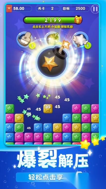 游戏的画风和玩法都非常的熟悉,而且十分简单,大家只需要把颜色相同的星星调换一下位置,凑成三个就可以消除。一点难度也没有,游戏里面还有很多不同的任务可以完成,做完之后可以拿到很多奖励。除了这种玩法,还可以去打排位挑战,去提升自己的经济能力,大家只需要合理的使用道具,闯关和上分就会变得非常轻松,无论是打发时间还是认真的体验都很合适。