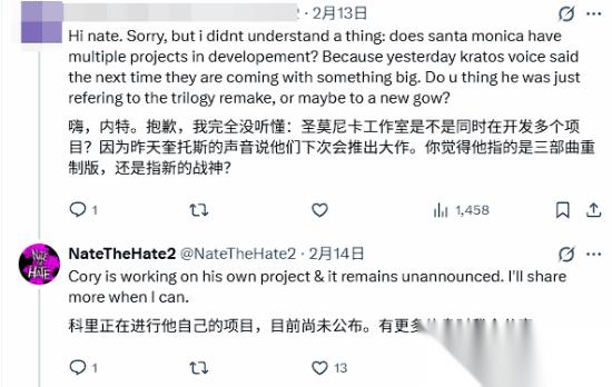 知名可靠消息人士NateTheHate在回复粉丝评论时谈及了这部作品,并强调目前已经公布的《战神三部曲:重制版》并非Cory Barlog的项目。