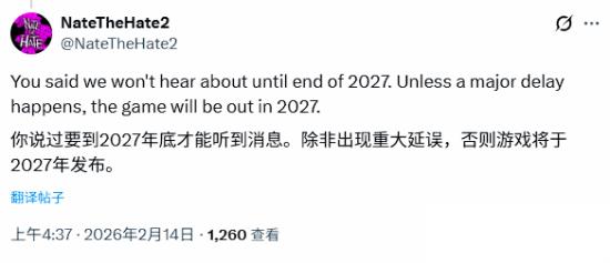 此外,他还表示我们将在2026年之内听到关于本作的更多消息,如果没有重大延期,游戏将于2027年正式发售。