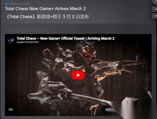 据外媒pcgamer报道。开发商Trigger Happy Interactive近日宣布,其基于《Doom II》模组开发的独立生存恐怖游戏《Total Chaos》将于3月2日推出重大更新,正式引入“新游戏+(New Game+)”模式。
