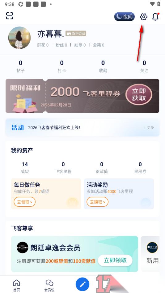 1.在手机上找到飞客app这款软件点击打开,在打开的页面上即可查看到显示的我的选项,将其点击打开即可进入操作。