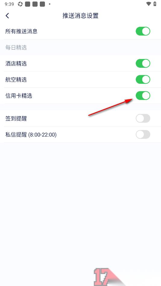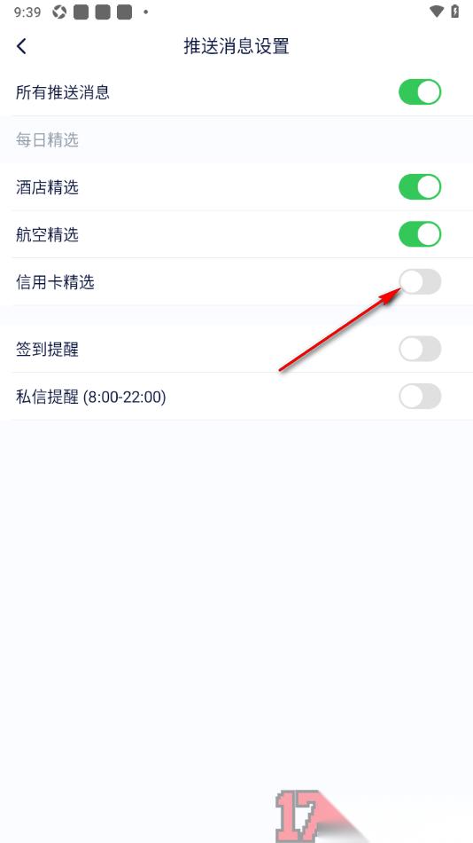 5.关闭该功能之后开关按钮的颜色即可变成灰色显示,后期系统将不会再为用户推送关于信用卡的精选推送消息。