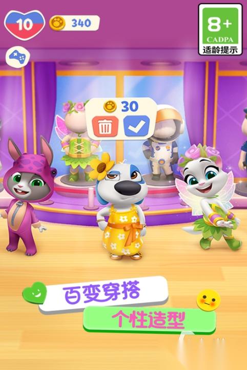 游戏塑造还原了许多灵动活泼的汤姆猫家族成员,让你尝到养宠的极致乐趣,你可以给诸多动物洗澡、喂食,陪伴他们玩耍等,增长他们的快乐值。游戏内置了许多小游戏,譬如涂鸦、赛车竞速等,才能满足每个玩家的癖好需求。游戏制造了许多精致美丽的首饰、服装,你可以给众多动物搭配造型,诠释你的审美价值观。