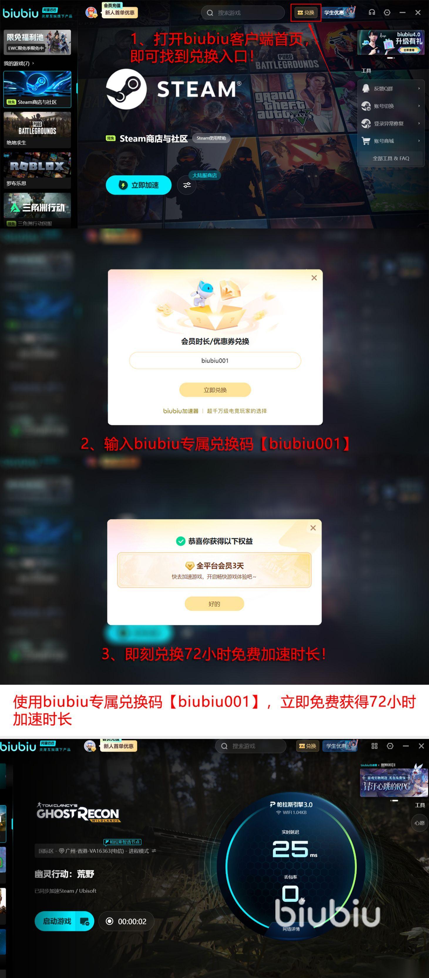 biubiu加速器靠着行业的认可度,早就已经成为玩家解决问题的关键。作为Pero战队的指定加速器,在竞技场景中的稳定性已经通过了验证,靠着这份专业度得到玩家的认可。从技术层面上来看,搭载的是帕拉斯3.0引擎,可以精准的识别游戏的数据包。迅速的完成加速,保证传输的稳定性。现在使用还可以享受免费加速时长,例如每一个用户都可以通过口令【biubiu001】获取3天的免费加速时长,对新用户而言,还可以解锁24小时的免费礼包。再叠加两种方法之后,最长可以免费96小时。