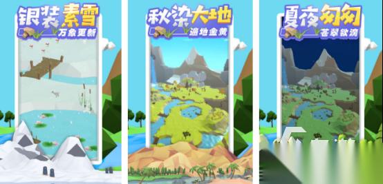 采用独特的低多边形美术风格所展现,呈现出与众不同的开放世界,在没有任何要求的情况之下,大家可无拘无束创造自己的天马行空。呈现出来的岛屿环境特别多,起初岛屿的环境可能特别糟糕,一切都需要按照自己的想法来创建。通过收集资源或者是收集爱心的方式,就能够认真创造出独具特色的生态绿洲,而且这里还有很多可爱的小动物等大家来收集,每只小动物身上都有心形的光点,通过点击的方式就可以轻松获取,还可获得大量的金币奖励,用于来开发新的陆地场景。