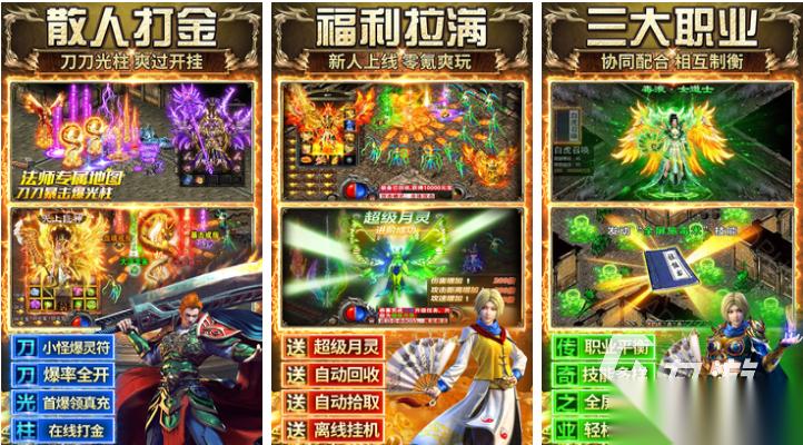 王者传奇是款拥有动作元素和RPG主题玩法的免费神作,在经典战法道职业上增加了刺客这样的输出职业,超棒的战斗特效和打击反馈也是传奇老玩家的最爱,拥有组队PK和个人竞技场这些玩法可以选择,甚至每个月都安排了固定的赛事可以随时参与,跨服战斗给大家提供了真实的PK感受,单人挑战的家园种植等精彩玩法也是本作标配,神装道具随意解锁带来的新鲜感不错。