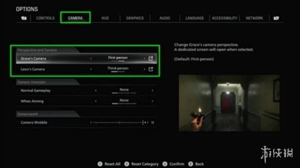 在视角设置中,玩家可以分别调整里昂和格蕾丝的视角模式。