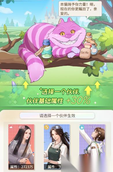 4.柴郡猫事件:系统随机抽取个人的3位伙伴,可指定任意一个伙伴,触发缩小或变大药水的效果即增加或减少其能力值。柴郡猫事件无法放弃,必须完成之后才能继续前进。