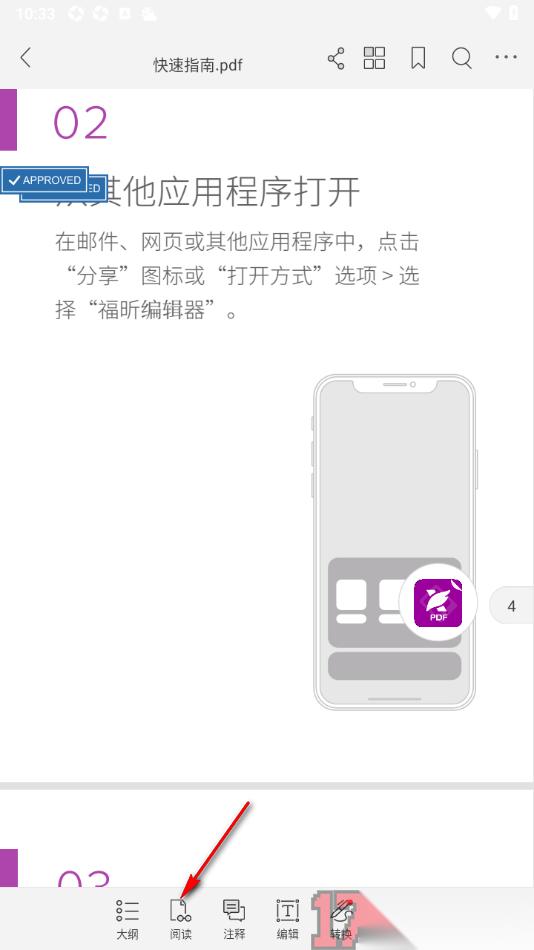 1.在手机上找到福昕PDF阅读器APP这款软件点击打开,即可在首页面上选择喜欢的PDF文档点击进入到编辑页面。