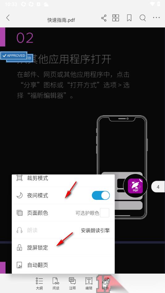 在一些用户的手机上会安装福昕PDF阅读器APP这款软件来编辑PDF文档,若是想要让文档页面看起来更加的高级和炫酷,可以开启夜间模式来设置,夜间模式功能也可以在一定程度上更好的防护用户的眼睛,特别是一些经常在夜间编辑PDF文档的用户来说是非常友好的。
