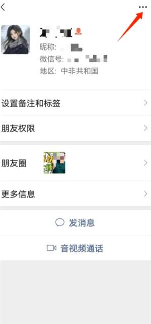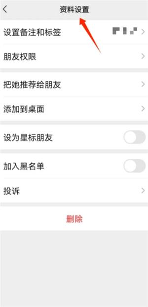 在好友详细资料页面中,点击右上角的【…】图标,进入【资料设置】界面。(图3、图4)