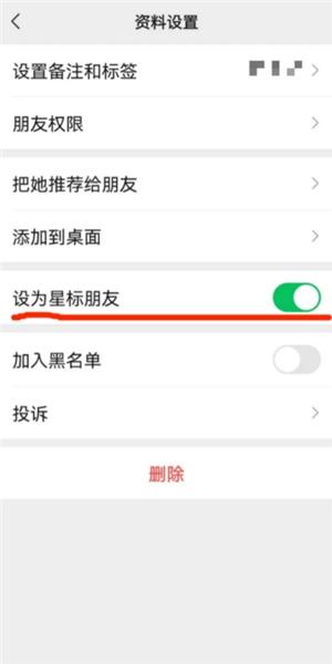 在【资料设置】界面开启【设为星标朋友】功能即可。(图5)