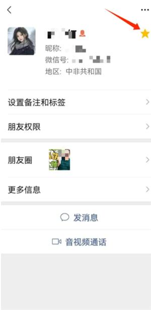 此时,在该星标朋友详细资料页面的昵称右侧就会显示一个黄色五角星标志。(图6)