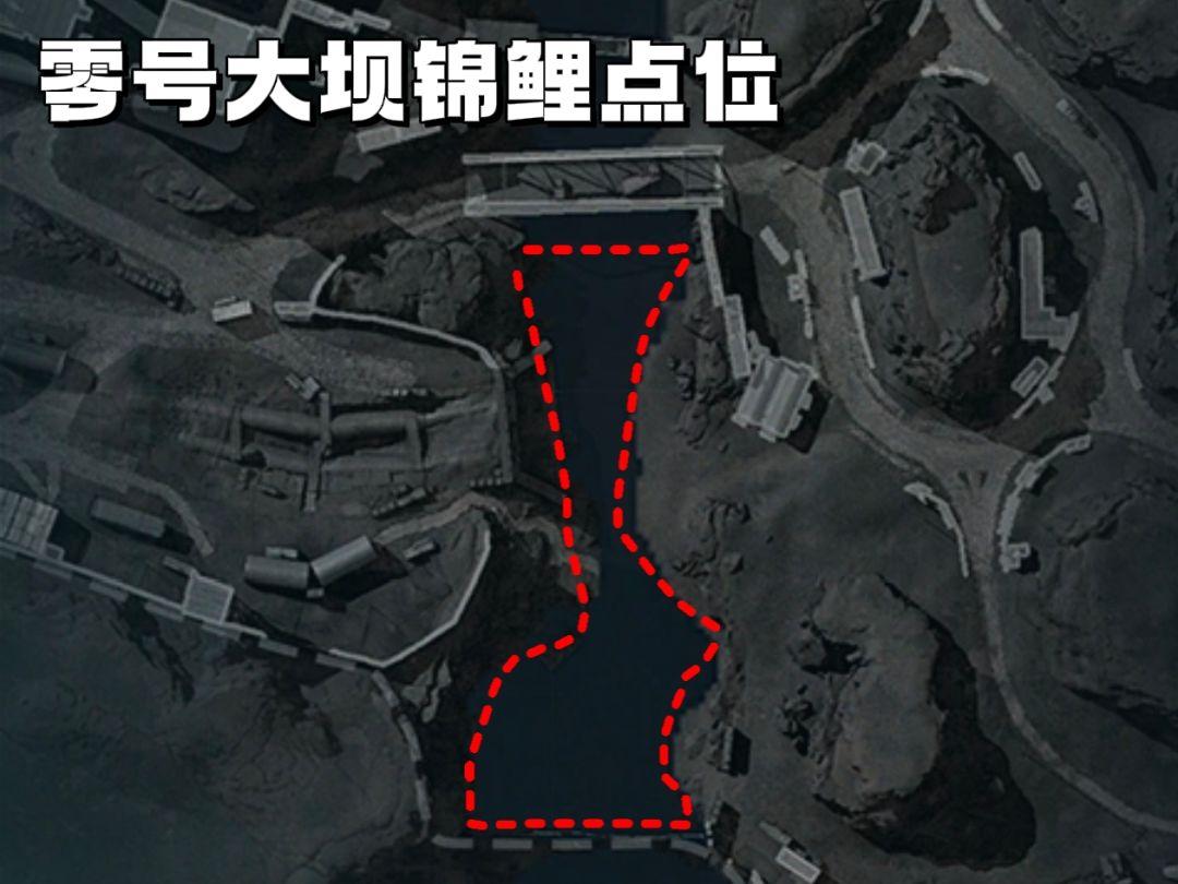 我们先来看零号大坝的点位,小变电站到水泥厂中间有一条河流,锦鲤的游动范围兔桑已经在图片中标出了,具体详细一些就是从最下方地图的边缘铁丝网一直到小桥这里(原海底捞蚌位置周边)。