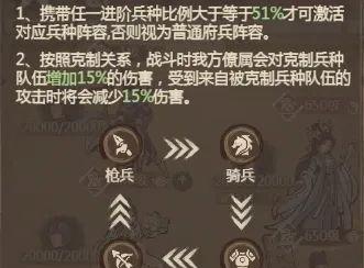 2、阵容搭配时,建议根据对手的势力和兵种选择合适的僚属和兵种组合,以最大化克制效果。