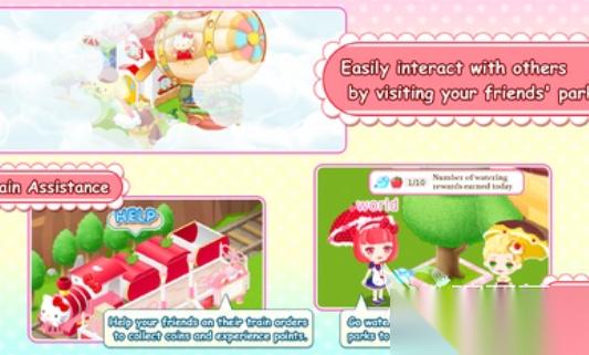 该游戏里,你可以建造一个游乐园,其中放置什么娱乐设施由你说了算,你可以尽情释放自己的创意来diy游乐园。游戏里,你可以看到凯蒂猫、琪琪等三丽鸥角色,被他们的可爱所征服,你可以给他们打造惊艳无双的穿搭造型,让他们满意,你也会非常有成就感。游戏堪称社交天堂,你可以结识不少有趣的玩家,可以拜访他们的游乐园,帮他们经营,给他们惊喜。