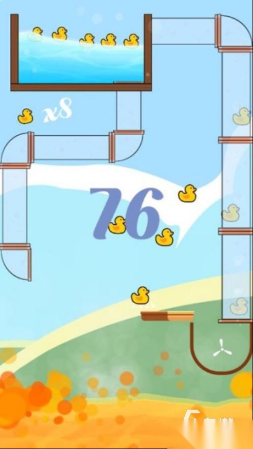 这是一款规则非常简单,但却特别魔性的游戏,它的卡通画风简约而又治愈,采用了大面积的蓝色和土黄色来设计,所以看上去更加温馨。每一个关卡当中玩家需要抓到的鸭子数量都不一样,点开游戏后里面会。直接显示本关的目标数字,比如是25只的话,玩家就要在管道当中接到25只鸭子才算胜利,比较锻炼观察力和反应能力。