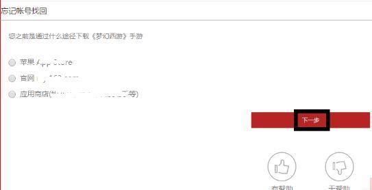四、点击“忘记账号找回”,进入到找回界面。在界面上就需要知道我们是从哪种渠道下载的梦幻西游手游的,选择后点击“下一步”。