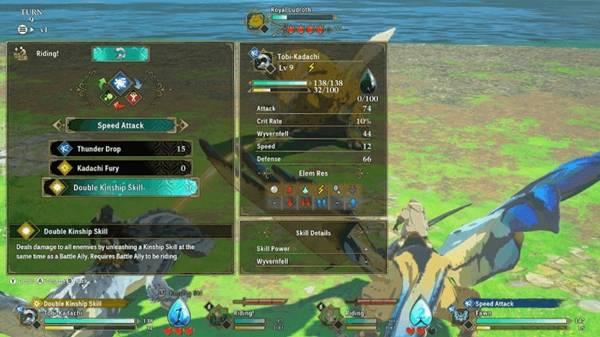 当你想发起双重亲族攻击时,必须填满两名队员的能量槽,并让他们骑乘各自的怪物。双重亲族关系越来越多地增加高伤害,这对强敌至关重要!