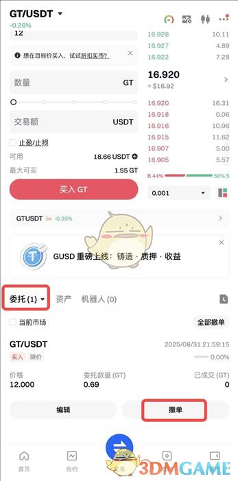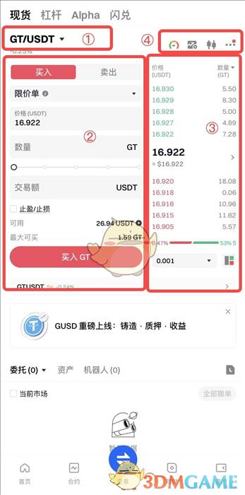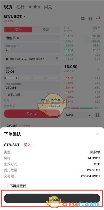 按照页面提示输入对应内容后,点击【买入GT/卖出GT】。