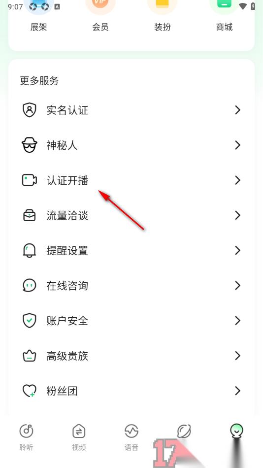 2.来到当前打开的窗口中会查看到显示的相关内容,找到其中的【认证开播】选项,点击打开即可进入到操作界面中。