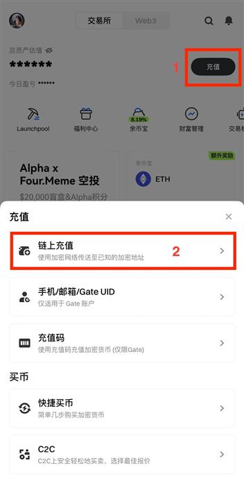 步骤二:选择“链上充值”