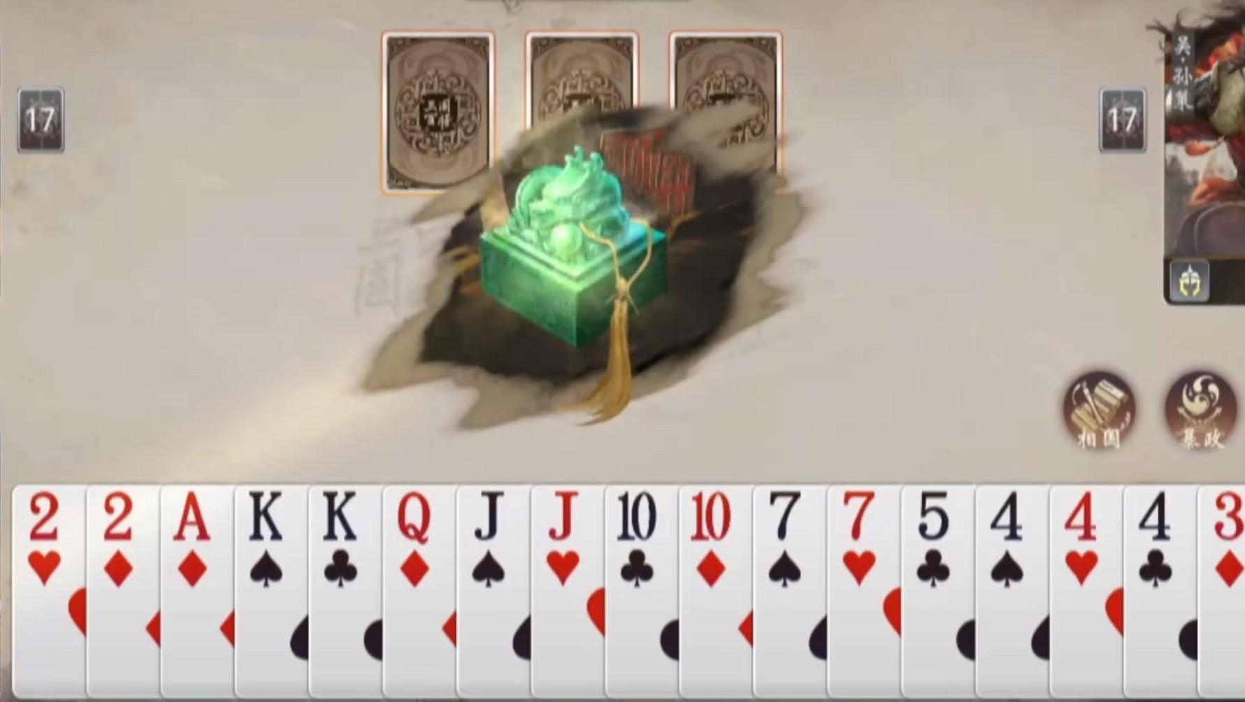 在实战中,大象是和董卓适配率比较高的,毕竟开局会给2张牌,如果牌型好的话我们就可以快速出牌;如果是爪黄,我们可以利用坐骑优势,全程出三带,快速过牌。如果牌型不好的话,就需要我们进行囤牌,然后再根据对方的牌型来出牌。但是要注意农民连手压制我们,实战时有很多玩家是喜欢搞场外信息的,比如吕蒙丢花,这就是提醒队友要注意配合压制,这个时候我们只能继续摸牌,囤牌。如果对方手上有王炸的话,就需要尽量凑炸弹进行压制,不然就很难翻盘。