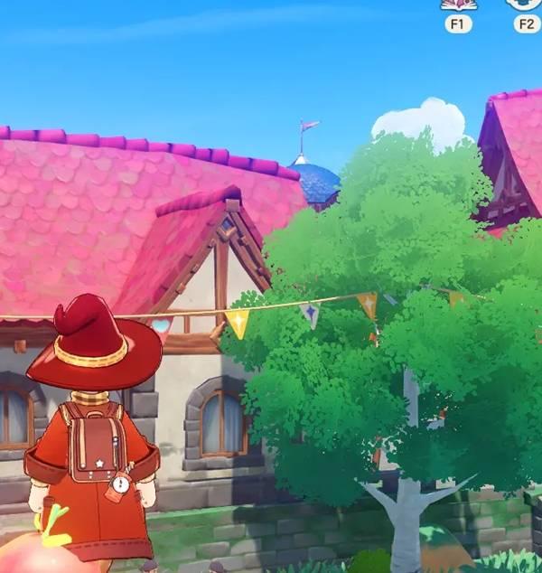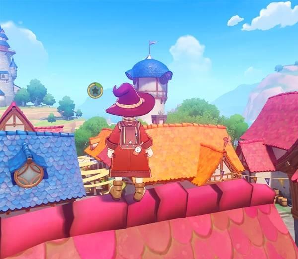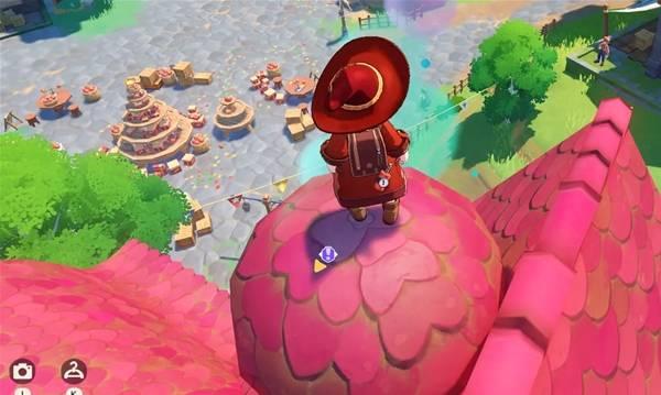 之后回到广场的告示牌那里,直接飞过告示牌背后的房子,会看到摆满可可果的广场,来到中间最高的那一堆可可果那里,最上面的就是可可果之王,那里有个纸条,点击纸条可以得到下一步的线索,让你找竞技场旁边的蓝色高塔。