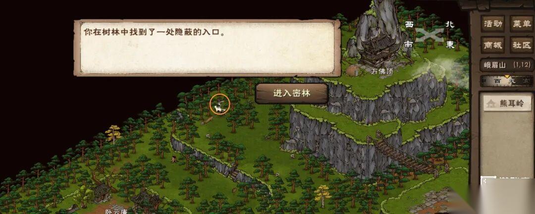 4.搜索(1,12)选择「进入密林」。
